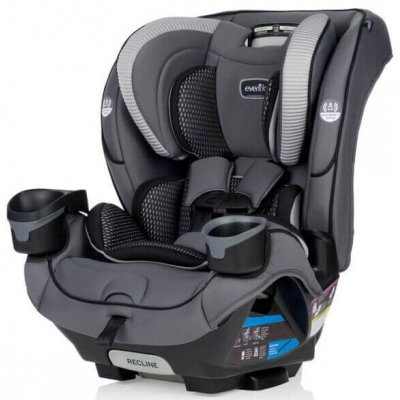 Це автокрісло 4в1 пропонує комфорт, безпеку та простоту використання. Посилений захист від бокового зіткнення знижує ударне навантаження до 30%. Підголівник регулюється однією рукою у 12 положень. Встановлення в автомобіль відбувається за допомогою штатного 3-точкового ременя або кріплень SureSafe™, які підключаються до роз’ємів Isofix. Для додаткової зручності автокрісло Evenflo EveryFit LX оснащене знімними вставками для малюків, чохлом, який можна прати в машинці та двома знімними підсклянниками. Зроблено у США.
