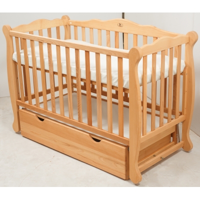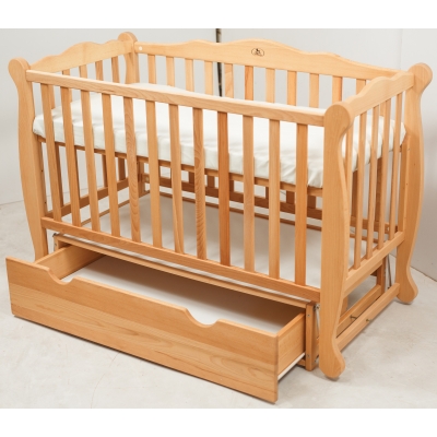 Дитяча кроватка ТМ Гойдалка NATALI маятник з шухлядою Бук