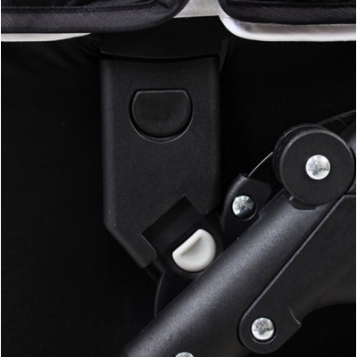 Двосекційний капюшон регулюється одночасним натисканням на червоні кнопки. По центру капора розташована ручка для перенесення. Невеликий додатковий козирок захистить малюка від надмірно яскравого сонця. Також у капюшоні передбачена секція на блискавці із вбудованою москітною сіткою для провітрювання. Накидка на ніжки з невеликим відворотом міцно кріпиться до спального блоку, захищаючи дитину від протягів.