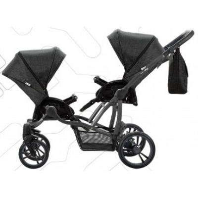 Оббивка коляски виконана з водовідштовхувальної тканини з високим захистом від сонячного ультрафіолетового випромінювання. Красиво підібрані кольори оббивки й екошкіряні деталі забезпечують сучасний зовнішній вигляд. Положення колисок в колясці спроектовано таким чином, що вони частково перекриваються, що робить цю двомісну модель більш компактною порівняно з іншими колясками для двійні. Коляску Bebetto B 42 Simply напевно оцінять батьки, які віддають перевагу мобільність.