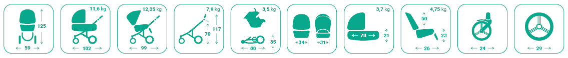 | Захист UV50+. Оббивка люльки та сидіння забезпечує високий рівень захисту від сонячних ультрафіолетових променів. | |