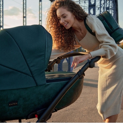 Накидку на ніжки вінчає вітрозахисний відворот на магніті. Зсередини чохол повністю складається з бавовни. У колисці є кишеньки на блискавці. Коляска комплектується матрацом з кокосовим наповнювачем.