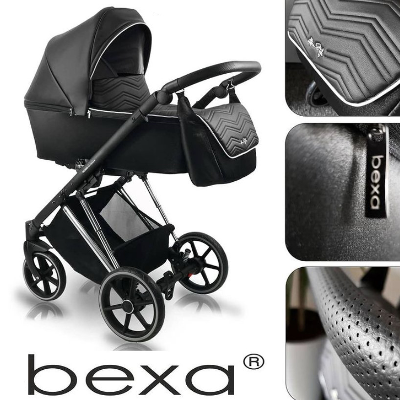 Візок виглядає чудово, а його срібний та чорний алюмінієвий каркас не тільки кидається в очі – він має додаткові амортизатори для поглинання ударів, що позитивно впливає на плавність та комфорт водіння. Коляска 2в1 Bexa Ultra Style V Amo (Бекса Ультра Стайл В Амо) – це поєднання простоти та елегантності, про що свідчать вставки з екошкіри та вишукані строчки. Завдяки цьому, дизайн коляски поза часом – вона завжди буде панувати, незалежно від тенденцій, що переважають у певний період.