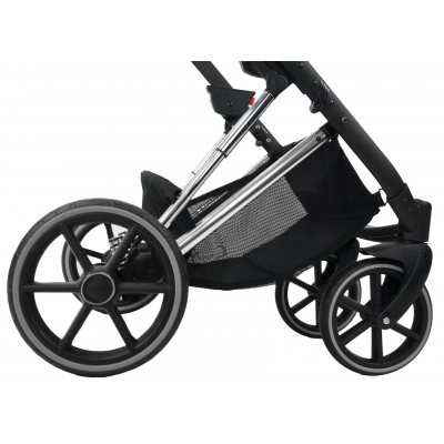 Візок виглядає чудово, а його срібний та чорний алюмінієвий каркас не тільки кидається в очі – він має додаткові амортизатори для поглинання ударів, що позитивно впливає на плавність та комфорт водіння. Коляска 2в1 Bexa Ultra Style V Amo (Бекса Ультра Стайл В Амо) – це поєднання простоти та елегантності, про що свідчать вставки з екошкіри та вишукані строчки. Завдяки цьому, дизайн коляски поза часом – вона завжди буде панувати, незалежно від тенденцій, що переважають у певний період.