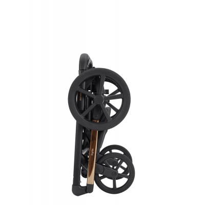 Шасі коляски компактно складається, зберігаючи вертикальне положення, що полегшує зберігання в обмеженому просторі. Прогулянковий блок також складається швидко і компактно, що зручно для транспортування в багажнику автомобіля.