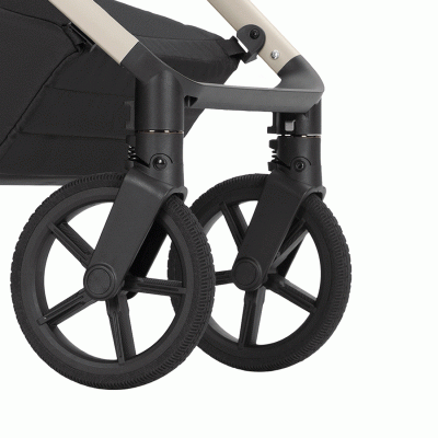 Зручність для батьків: елегантна та містка сумка з кріпленнями на раму дає можливість мати під рукою всі необхідні речі для малюка, а швидкознімні передні колеса дозволяють легше транспортувати коляску.