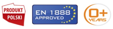Продукт вироблений у Польщі відповідно до європейських нормативів безпеки щодо дитячих колясок EN 1888: 2012. Для виготовлення коляски використовувалися сертифіковані Oeko-Tex Standard 100 тканини.