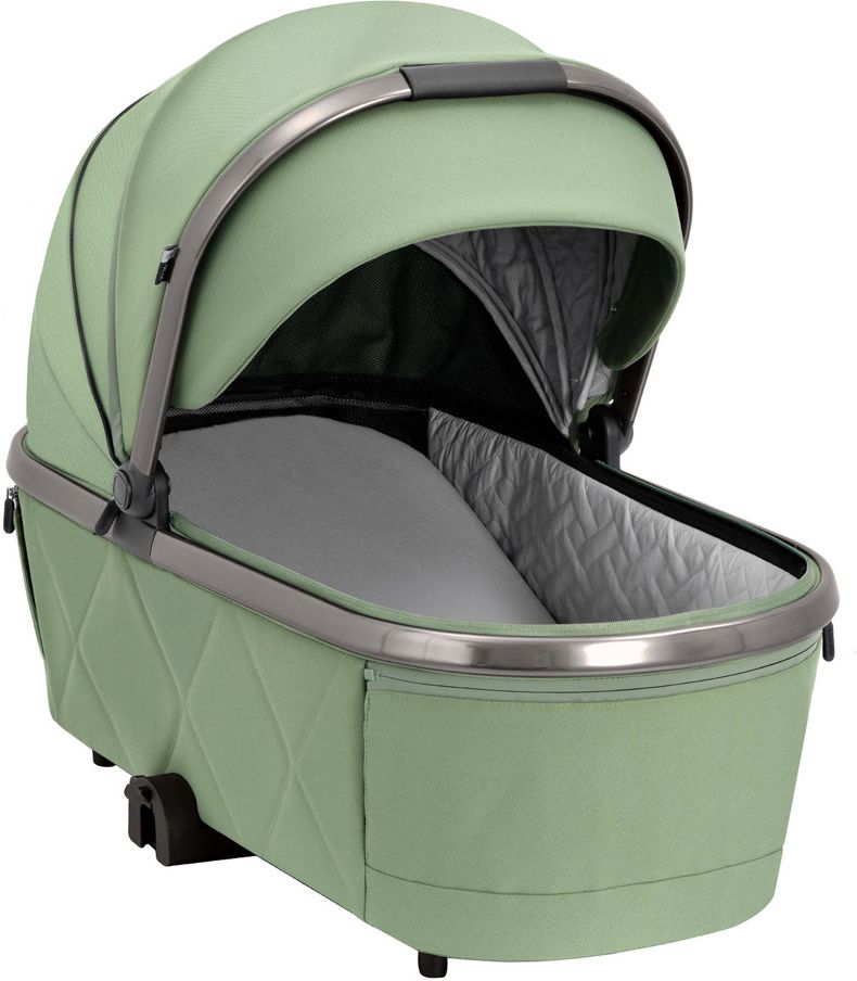 - Люлька для новонароджених: простора і комфортна, оснащена м'яким матрацом та великим капюшоном з вентиляційною сіткою, який захищає дитину від сонця і негоди.