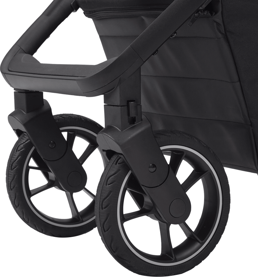 Усі колеса оснащені системою амортизації. Це поліпшує ходові властивості візка та надає додаткового комфорту маленькому пасажиру.