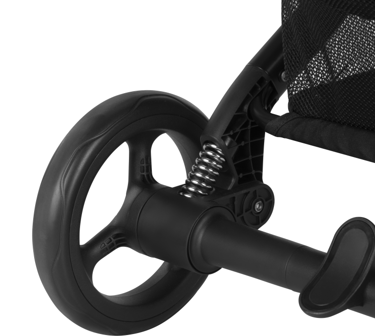 У колясці Beezy кожне колесо має окремий механізм поглинання ударів, тому їзда по бруківці та іншим дрібним нерівностям пройде надзвичайно плавно. Всі колеса стійкі до проколів, тому ви уникнете зайвих турбот під час розслаблюючих прогулянок. Завдяки переднім поворотним колесам Beezy чудово підходить для руху по міських вулицях.