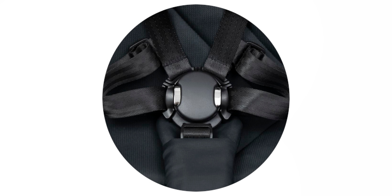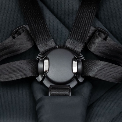Крім бамперу, дитина фіксується 5-точковим внутрішнім ременем безпеки з м'якими чохлами, що запобігають натиранню. Внутрішні лямки застібаються на сучасну, зручну магнітну пряжку.