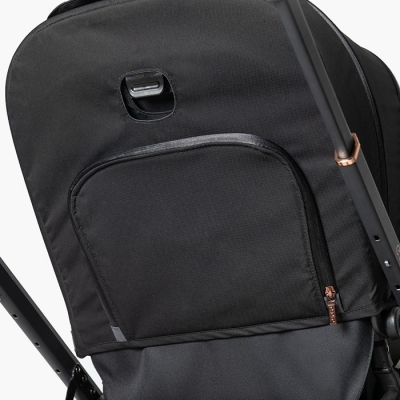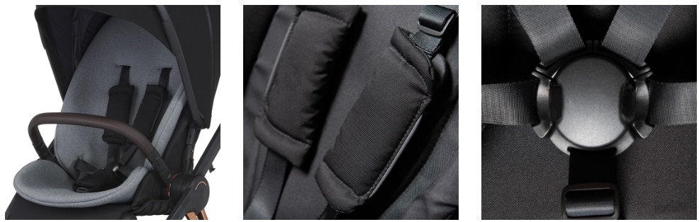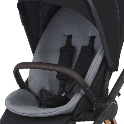 Сидіння коляски виготовлено з високоякісних матеріалів, оснащене м'якою вставкою, яка подбає про комфорт і безпеку найменших пасажирів. Практична кишеня, розташована на спинці коляски, дозволить зберігати цінні дрібниці. Усередині сидіння встановлені п'ятиточкові ремені безпеки, оснащені м'якими протекторами для запобігання подразнення шкіри малюка. Магнітна пряжка дозволяє пристібати ремені набагато швидше.