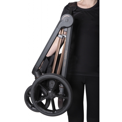 Візок оснащений системою швидкого складання та переміщення, щоб зробити повсякденне використання коляски набагато простішим, дотримуючись принципу: одна рука завжди для дитини. Завдяки зручному ременю батьки мають можливість одночасно носити складену коляску на плечі. Вбудована система фіксації запобігає розкладанню коляски при вертикальному положенні. Дуже компактні розміри в складеному вигляді дозволяють колясці поміститися в будь-який багажник автомобіля і дозволяють легко зберігати її навіть у найтіснішій квартирі.