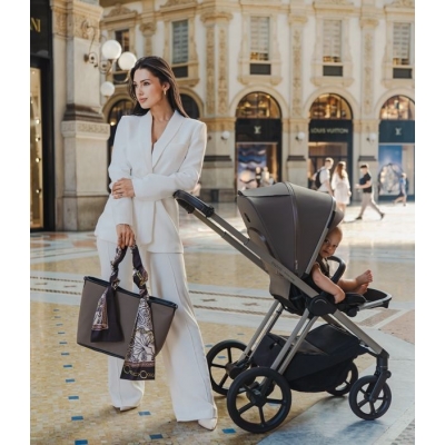 Унікальний зовнішній вигляд коляски робить її популярним вибором серед батьків. Високоякісні тканини, що використовуються у виробництві, поєднують новітні елементи дизайну з функціональними рішеннями, включаючи сонячний фільтр UV50+ або підвищену водонепроникність. Вентиляційне вікно в капюшоні також підходить для спостереження за малюком. Коляска оснащена містким і елегантним кошиком і практичною сумкою для покупок. При цьому кошик можна закрити завдяки спеціальній панелі і зберігати там найнеобхідніші предмети.